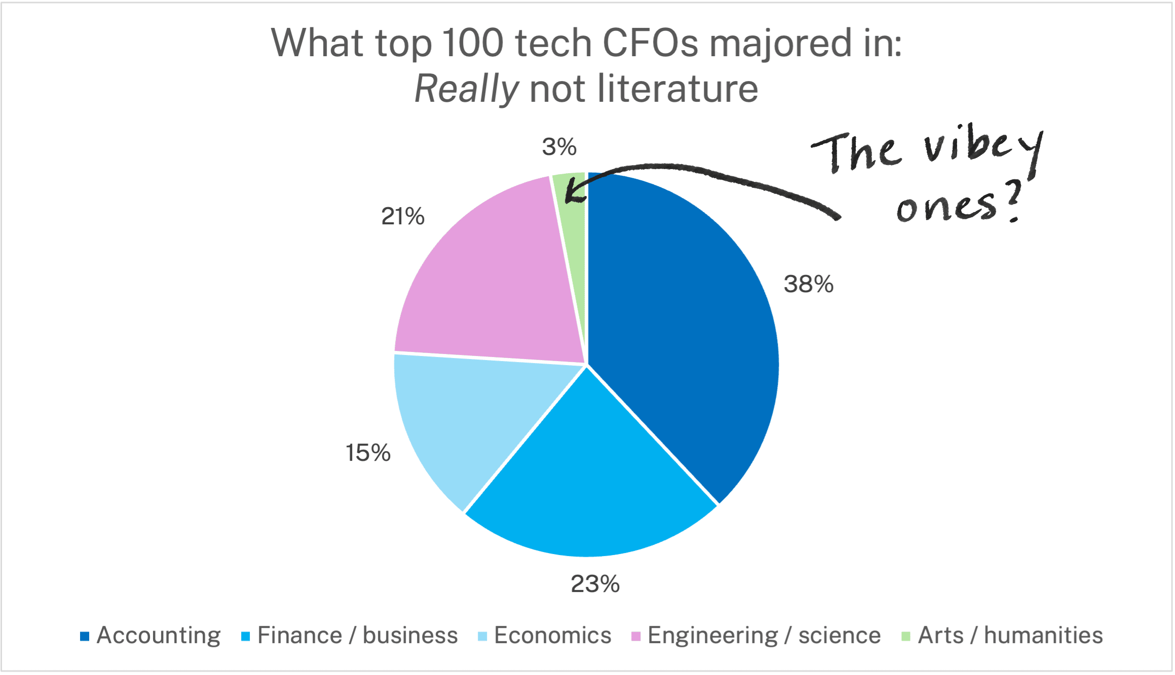 The top 100 tech CFOs are even less vibey than everyone else, with only 3% (!) of them having majored in the arts or humanities.
